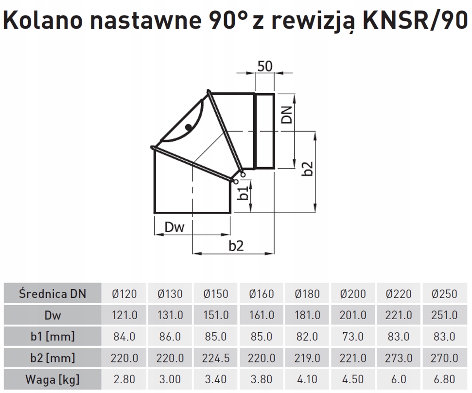 Kolano nastawne Darco KNSR150/90-CZ2 150 mm czarne
